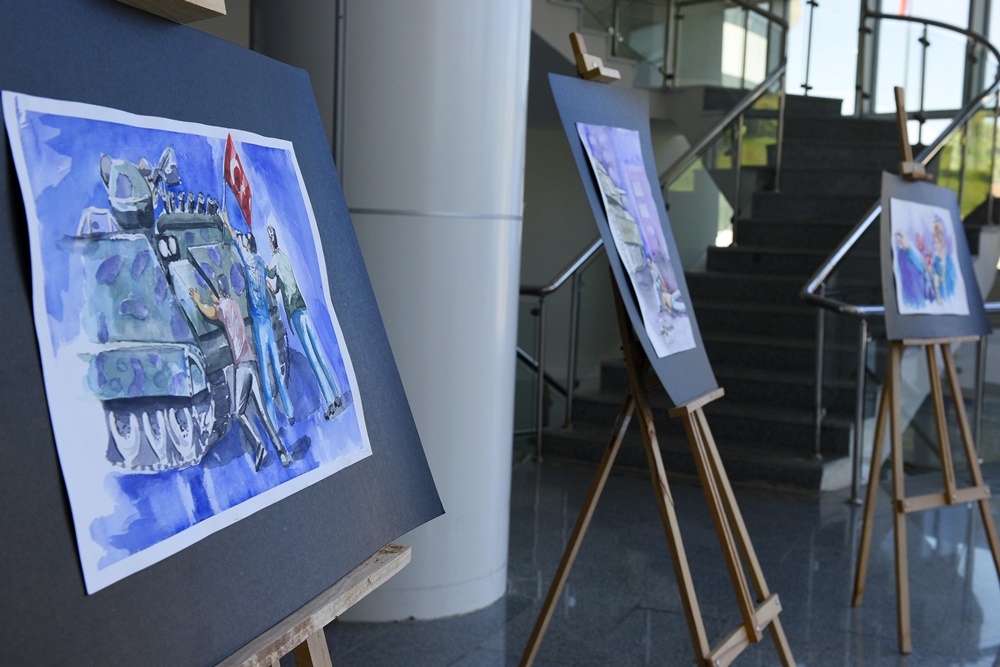 15 Temmuz hain darbe girişiminin 7. yıl dönümünde şehitleri hatırlamak, gösterilen direnci, birlikteliği ve iradeyi belleklerde taze tutmak amacıyla, MCBÜ Güzel Sanatlar Tasarım ve Mimarlık Fakültesi Dekanı Prof. Dr. Oğuz Dilmaç’ın kişisel suluboya eserlerinden oluşan “15 Temmuz Demokrasi ve Milli Birlik Günü”” konulu serginin açılışı gerçekleşti.