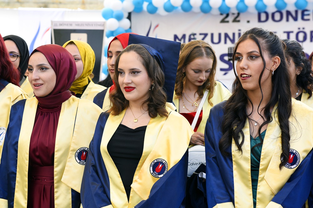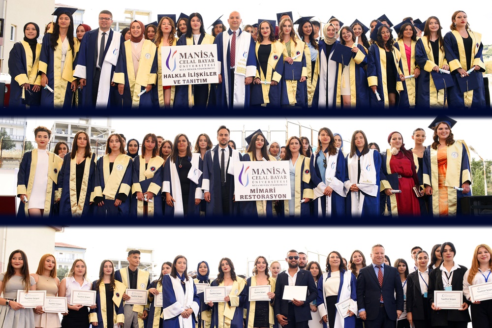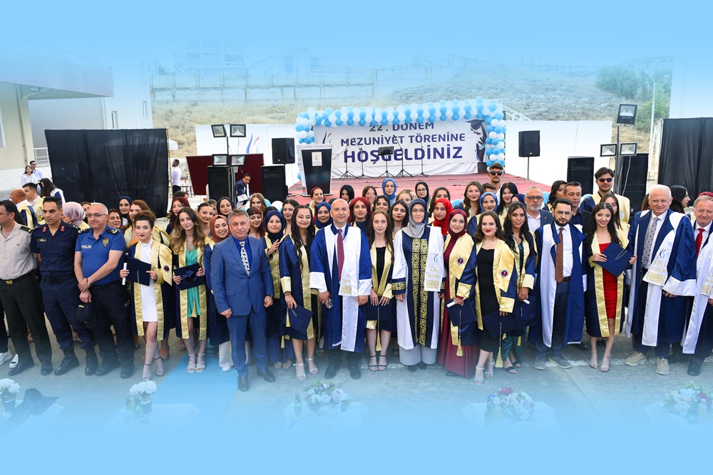 The 22nd term graduation ceremony of the 2023-2024 academic year at Kula Vocational School was held. The ceremony was attended by Rector Prof. Dr. Rana Kibar, Vice Rector Prof. Dr. Oktay Üçer, protocol members, guests, parents, members of the press, and students.