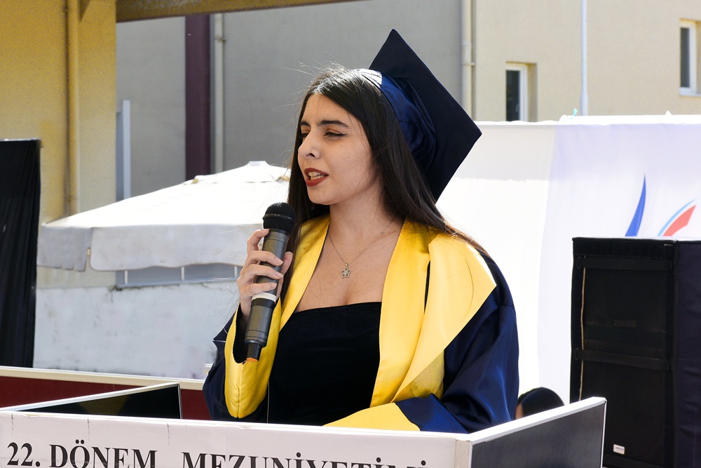 The program began with a moment of silence and the national anthem. The valedictorian, Ada Deniz, delivered a speech on behalf of the graduates.