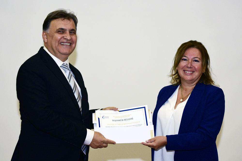 At the program, a certificate of appreciation was presented to Prof. Dr. Tuğba Gürpınar Çavuşoğlu by Prof. Dr. Artuner Deveci, Dean of the Faculty of Medicine.