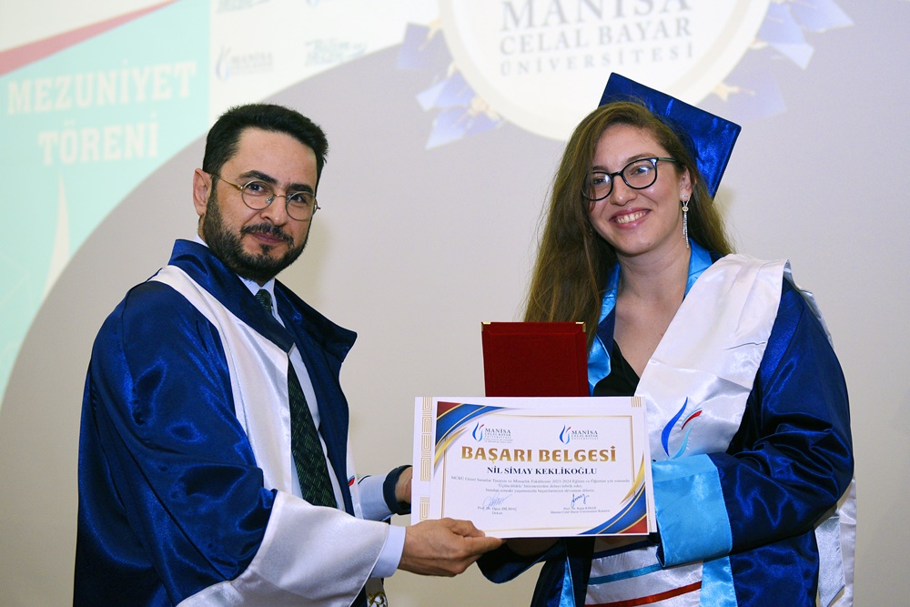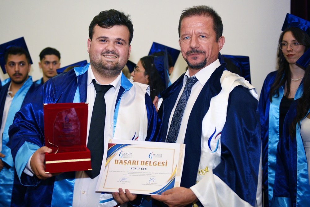The 2023-2024 Academic Year 3rd Term Graduation Ceremony of Manisa Celal Bayar University (MCBÜ) Faculty of Fine Arts, Design, and Architecture was held at the Süleyman Demirel Cultural Center in the Health Campus.