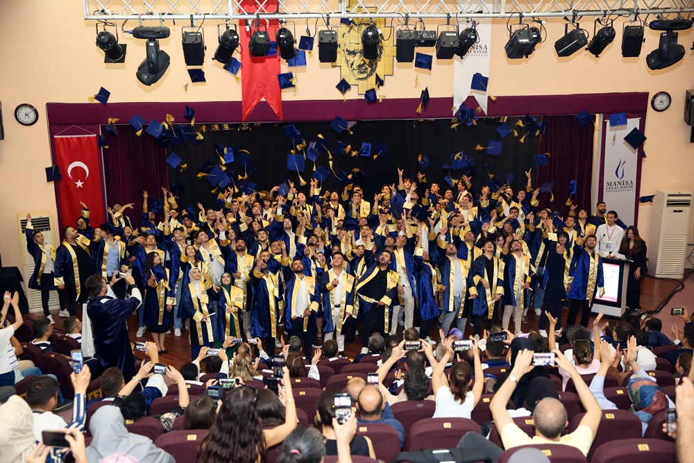 Manisa Celal Bayar University Rector Prof. Dr. Rana Kibar, Vice Rector Prof. Dr. Kadir Ay, Vice Rector Prof. Dr. Oktay Üçer, Secretary General Erhan Doğan, protocol members, academic and administrative staff, graduating students and their families and many guests attended the ceremony.