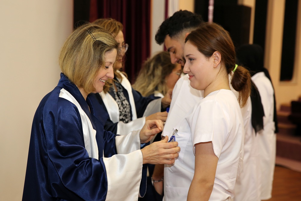 MCBÜ Sağlık Bilimleri Fakültesi 2022 – 2023 Eğitim Öğretim yılı hemşirelik bölümüne en yüksek puan ile girmeye hak kazanan Mercan Günay konuşmasında MCBÜ Sağlık Bilimleri Fakültesi Hemşirelik Bölümü’nü köklü geçmişi, deneyimli akademik kadrosu nedeniyle tercih ettiğini belirtti. Fakültenin geniş olanaklarına değinen Günay, mesleğin bir nişanesi olarak giydiği üniformanın büyük bir özveri, fedakârlık, sabır ve beceriyi temsil ettiğini ifade etti.