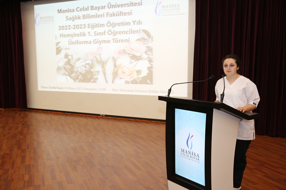 MCBÜ Hafsa Sultan Hastanesi Sağlık Bakım Hizmetleri Müdürü Uzman Hemşire Ferya Karadağ Yalçın konuşmasında tüm öğrencilere hoş geldiniz diyerek hemşirelik üniformasının temsiliyetine değindi. Hemşirelik Bölüm Başkanı Prof. Dr. Dilek Ergin hemşirelik üniformasının mesleki değerlerimizin saygınlığımızın ve profesyonelliğimizin bir sembolü olduğunu ifade etti. Sağlık Bilimleri Fakültesi Dekanı Prof. Dr. Seyhun Kürşat, fakülteyi tercih ettiği için öğrencilere teşekkürlerini ileterek akredite olan hemşirelik bölümünde öğrencilerin katkısının bulunduğunu ve fakülteye katılan öğrencilerin de aynı özveriyle bu sürece dahil olacaklarına yönelik inancını belirtti. MCBÜ Rektör Yardımcısı Prof. Dr. Kıvanç Günhan ise Manisa Celal Bayar Üniversitesi’nin en güçlü yanlarından birinin iletişim olduğunu belirterek, yeni başlayan öğrencilere iletişimlerini güçlendirmelerinin önemine dair açıklamalarda bulundu.