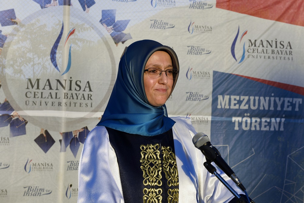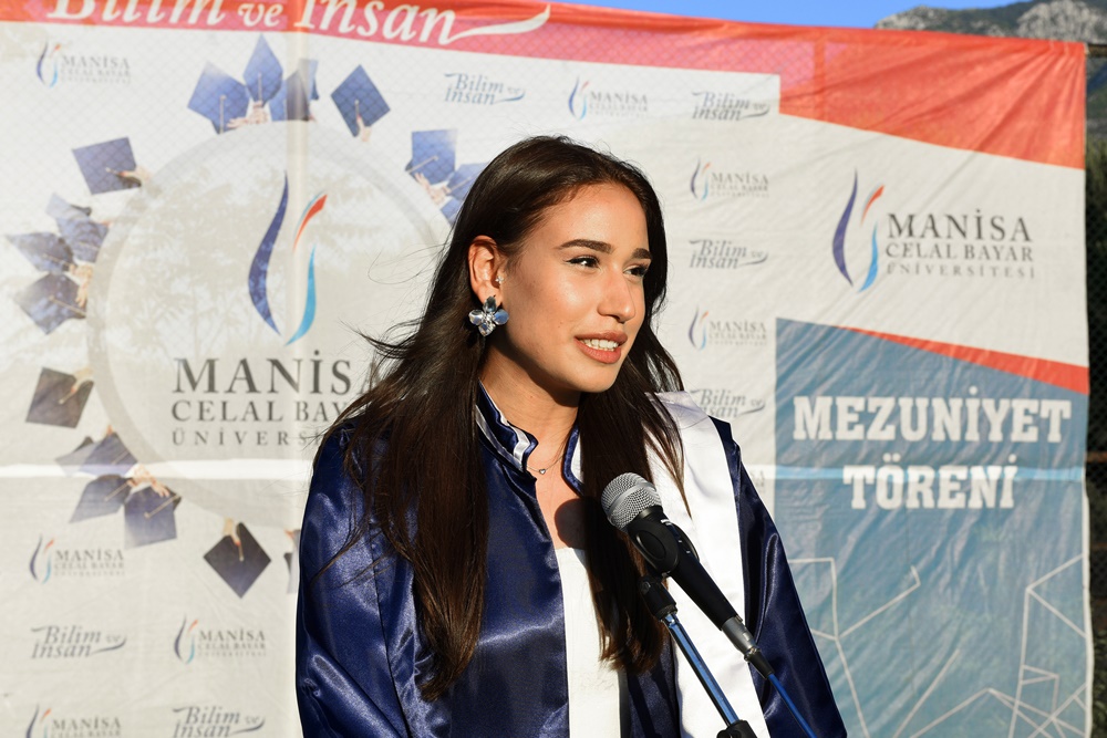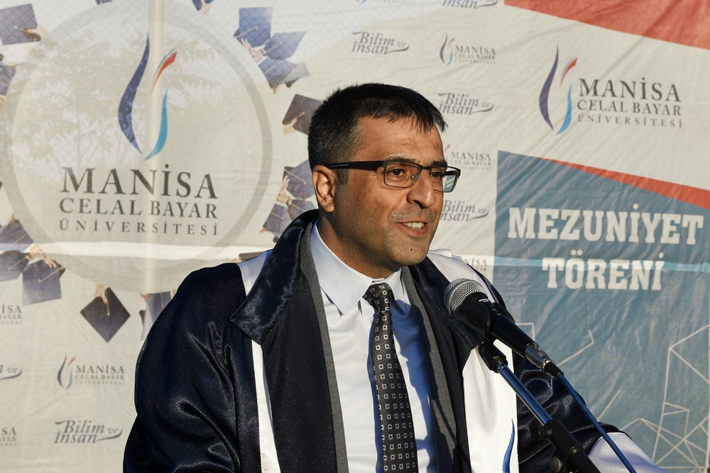 Dear students, with the education you have received here, you have become a brand value of our faculty and university. Never forget your responsibilities to your esteemed families, your teachers, who have imparted their knowledge to you, and our state, which has provided you with all opportunities to reach this day. As graduates of our university, pursue your dreams tirelessly, as entrepreneurial individuals who uphold national unity and integrity, are always open to innovation, and embody national and spiritual values. As we bid farewell to you today as our students, we welcome you once again as our graduates. The doors of Manisa Celal Bayar University and our hearts will always be open to you. I wish you all the best in your future endeavors. May your life be filled with health, happiness, and success. May your path be clear, and may God be with you.”