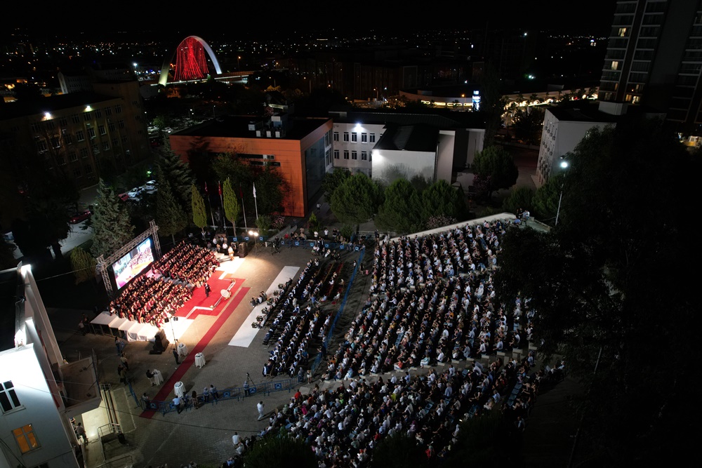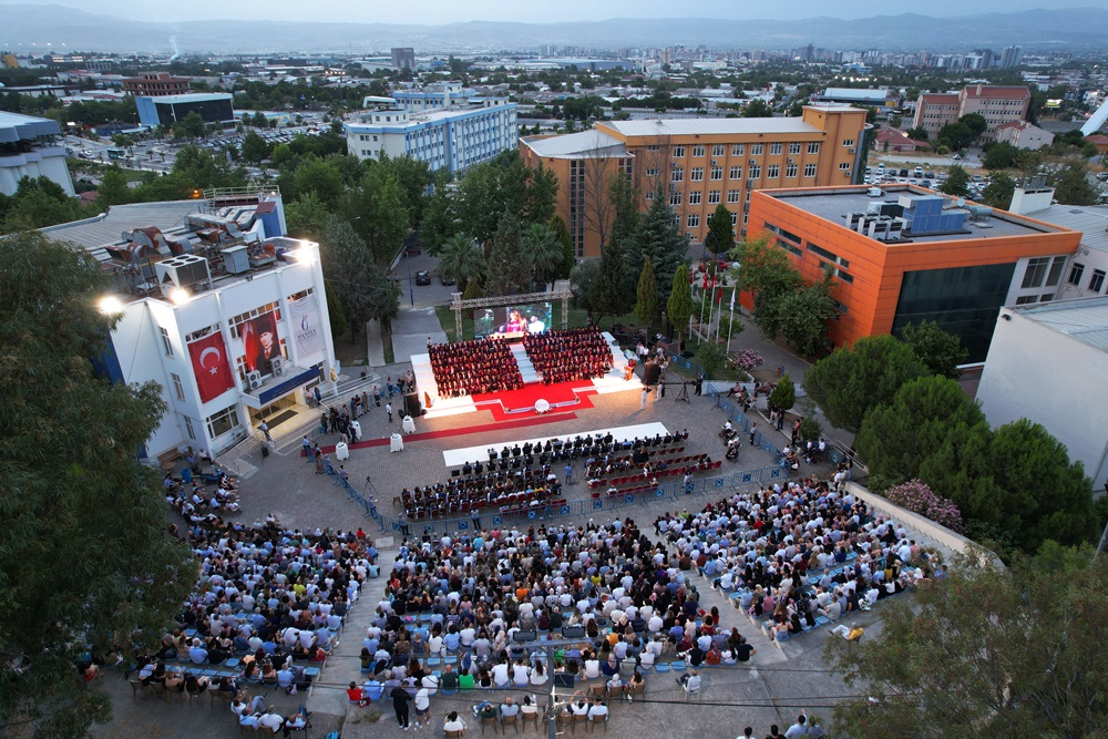 The ceremony was attended by several dignitaries including Manisa Governor Enver Ünlü, Provincial Gendarmerie Commander Brigadier General Zafer Tombul, Rector Prof. Dr. Rana Kibar, District Governors Atilla Kantay and Fatih Genel, Chief of Police Fahri Aktaş, Vice-Rectors Prof. Dr. Ahmet Çetin, Prof. Dr. Kadir Ay, Prof. Dr. Oktay Üçer, General Secretary Erhan Doğan, protocol members, academic and administrative staff, families, and students.