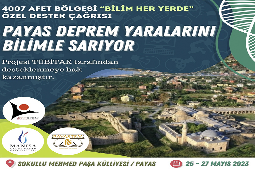 Bu kapsamda Manisa Celal Bayar Üniversitesi Proje Koordinasyon Uygulama ve Araştırma Merkezi Öğr. Gör. Dilek Karaca’nın yürütücülüğünde hayata geçecek “Payas Deprem Yaralarını Bilimle Sarıyor” projesi 25-27 Mayıs 2023 tarihleri arasında Hatay ili Payas ilçesinde gerçekleştirilecek.