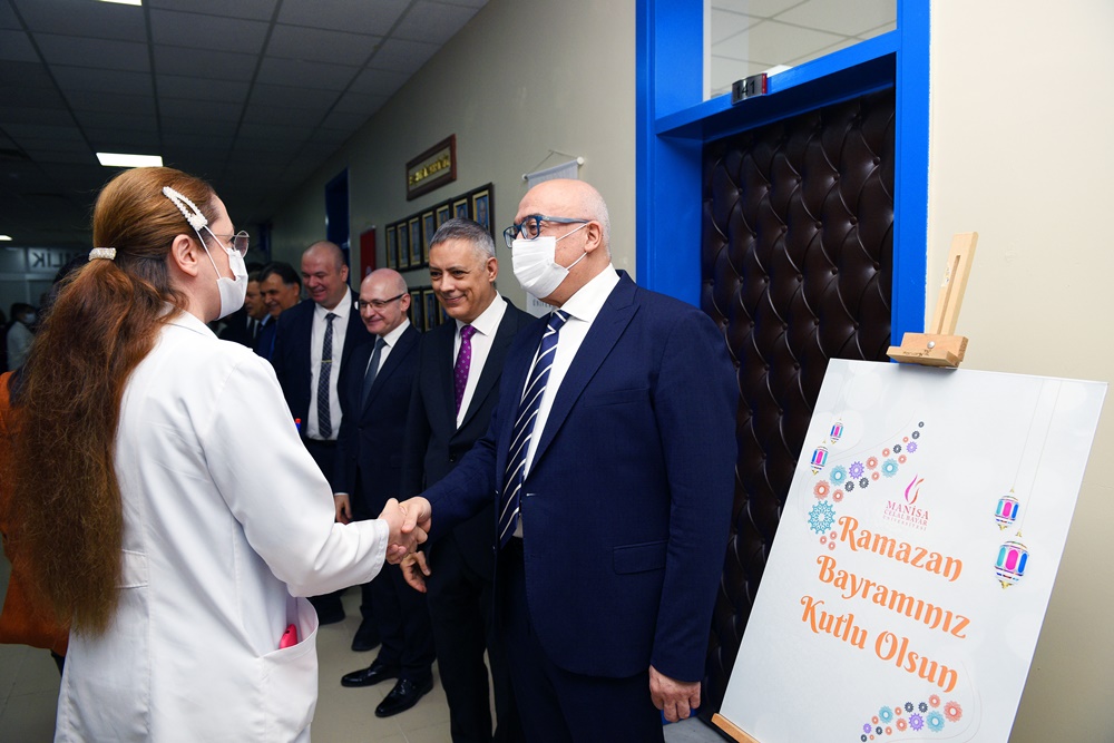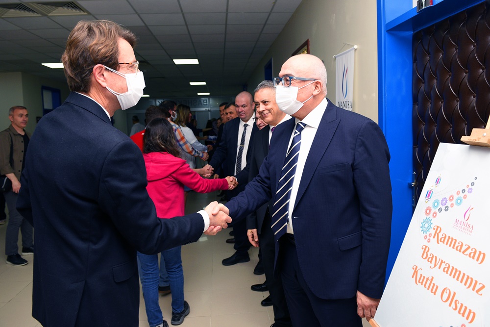 Şehzadeler, Uncubozköy Sağlık Yerleşkesi ve Şehit Prof. Dr. İlhan Varank Yerleşkelerinde düzenlenen ve samimi bir ortamda gerçekleştirilen törenlerde Rektör Prof. Dr. Ahmet Ataç, Ramazan Bayramı dolayısıyla törene katılan üniversite çalışanlarıyla tek tek bayramlaştı. Göreve geldikleri günden itibaren bütün yöneticilerle herkesi kucaklamaya ve gönüllere dokunmaya gayret ettiklerini belirten Prof. Dr. Ahmet Ataç, tüm çalışanların Ramazan Bayramı’nı canı gönülden kutlayarak tebrik ederken “Ülkemizin, milletimizin ve Manisa Celal Bayar Üniversitesi ailesinin mübarek Ramazan Bayramlarını canı gönülden tebrik ediyor; bayramın ülkemize, milletimize ve bütün insanlığa huzur, barış, adalet ve merhamet getirmesini temenni ediyorum” ifadelerini kullandı.